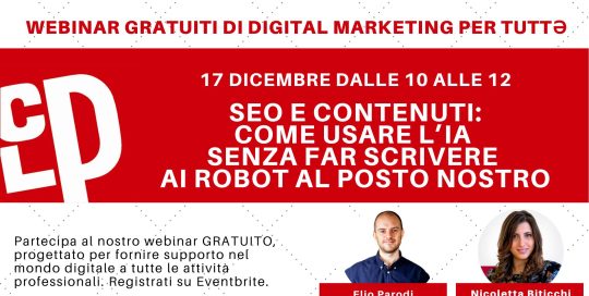 Nicoletta2025-03-19T17:32:00+01:00"Google si reinventa: innovazioni SEO e intelligenza artificiale" il webinar gratuito di CLP per agosto 2024